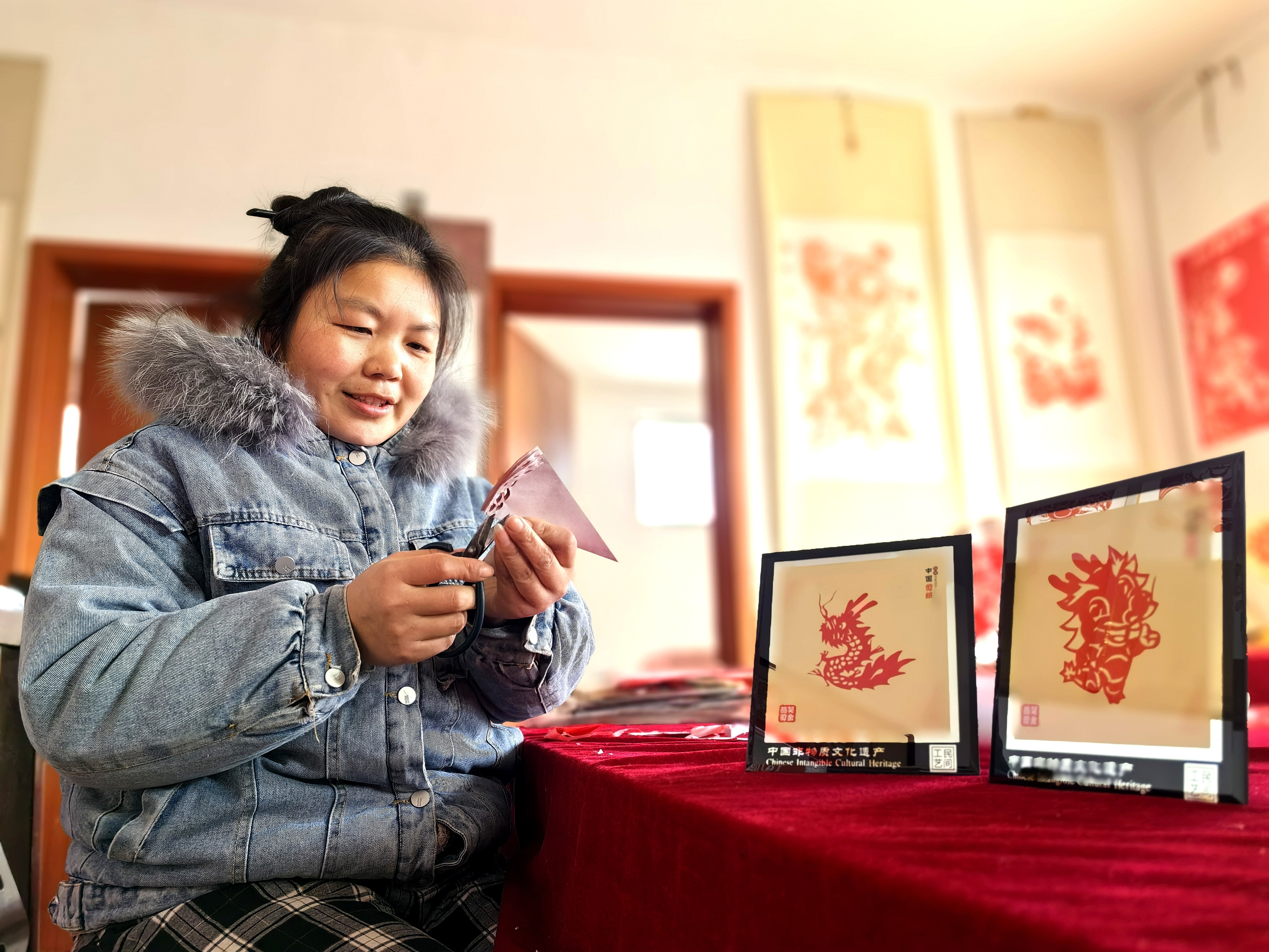 剪纸艺人吴金燕用一张张红纸剪出浓浓年味儿,映照着老百姓的红火生活