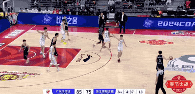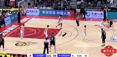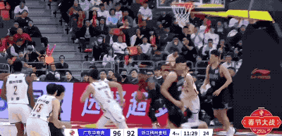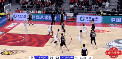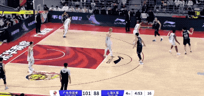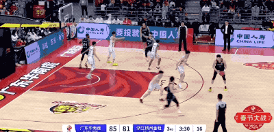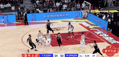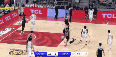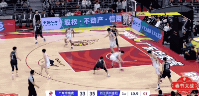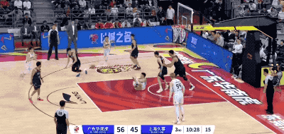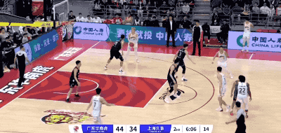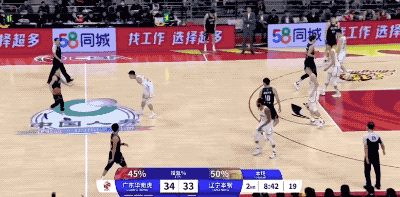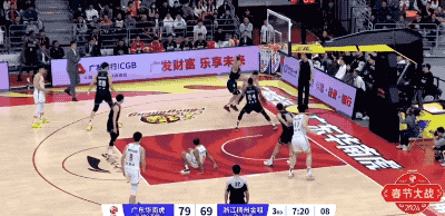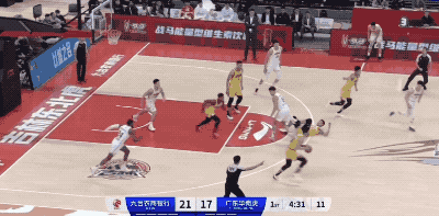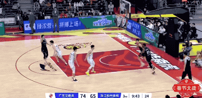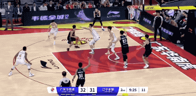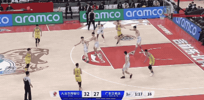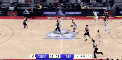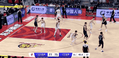 广东队起手的进攻被防下来,然后胡明轩在回合还剩12秒时接手,重新策动攻势的他打成2+1,把一次糟糕的组织变成宝贵的得分