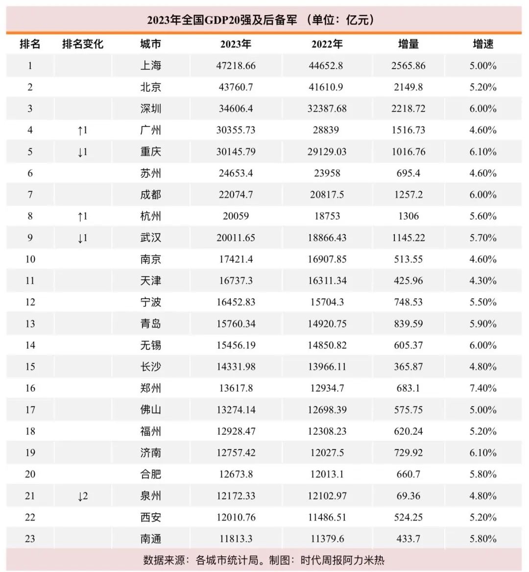 GDP20强城市格局洗牌:泉州失守,合肥晋级