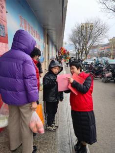 五寨县妇联组织巾帼志愿者,通过向沿街商铺发放宣传资料,在社区公告栏、小区门口等地张贴宣传资料,深入小区“敲门”等方式向广大居民告知“禁购禁存、禁燃禁放”相关规定,并讲解禁燃禁放烟花爆竹的重要意义,鼓励他们向身边的亲朋好友进行禁购禁存、禁燃禁放宣传引导,努力做到禁燃禁放烟花爆竹规定家喻户晓人人皆知。