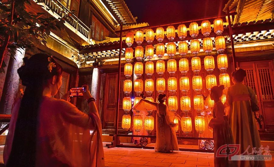 游客身着各式汉服在洛邑古城景区沉浸式体验当地历史文化。近年来,洛阳市积极推动“非遗进景区”“非遗进民宿”等,推动非遗在创造性转化、创新性发展的过程中活态传承。摄影 王煜文近年来,该街区以“留住老洛阳的底片,建好新洛阳的客厅”为指导,在整治提升基础设施的同时,引进了一批深受年轻游客喜爱的新业态,不少以河洛文化、古城特色为主题的剧本杀场馆、VR体验馆、推理馆等相继开业。满街的牡丹画、牡丹饼、牡丹瓷,在这里畅销。丰富的农产品也通过这里走向全国各地。在古街上,游客可以目睹这些产品的制作过程,感受独特的民间艺术魅力。街区还保存了大量完好的古建筑群和清一色的青石板路面,这里的唐装盛行,仿佛穿越回了盛唐时期。