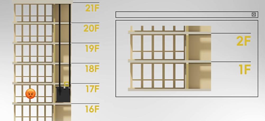 比如我明明是想从 17 楼网上去 21 层,但是因为我楼上有个家伙想要从 18 楼去 16 楼,那我还得陪他重新下去一趟,头都要被晃晕了。