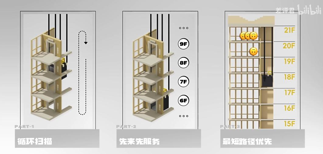 不过这种办法虽然 “ 公平 ”,但是效率可算不上高,毕竟没人的时候电梯也在运作,而且很多时候还会浪费时间去空跑。