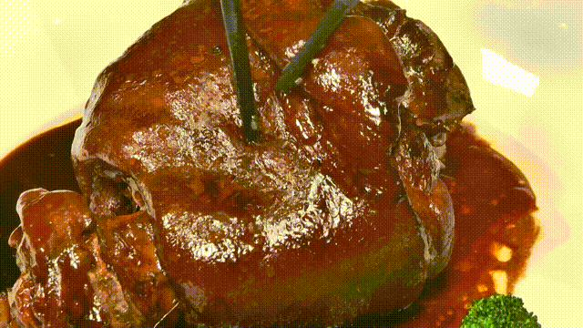 冰糖蹄髈其实就是红烧做法,但是加了更多的冰糖,典型的上海人“甜口”,比一般的红烧蹄髈更色泽红亮,口感诱人。