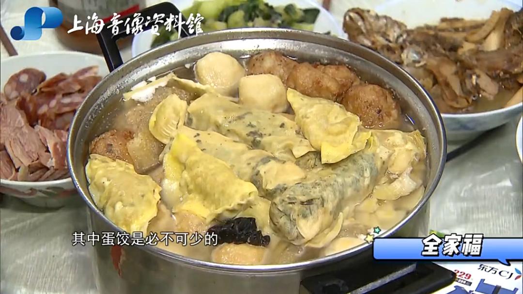 有的人家还会放点粉丝,丰盛的“全家福”滚烫上桌,把整个年夜饭推向高潮。就算此时已经吃得很饱了,还是要挪出胃容量,喝一碗即清淡又鲜美的“全家福”汤,才算完成这顿年夜饭。吃不完的全家福,第二天再加些蔬菜和丸子,又变身一顿小火锅。“全家福”看似一道菜,前期准备工作非常多。以前考究的人家,肉圆、鱼圆都是提前自己做的,百叶包里一般是荠菜肉馅。以前物质困难的时期,蛋饺是用一包一包冰蛋做的,还要用蛋票才买的到;现在条件好了,但是很多人家还是会自己做,因为能吃出家的味道~