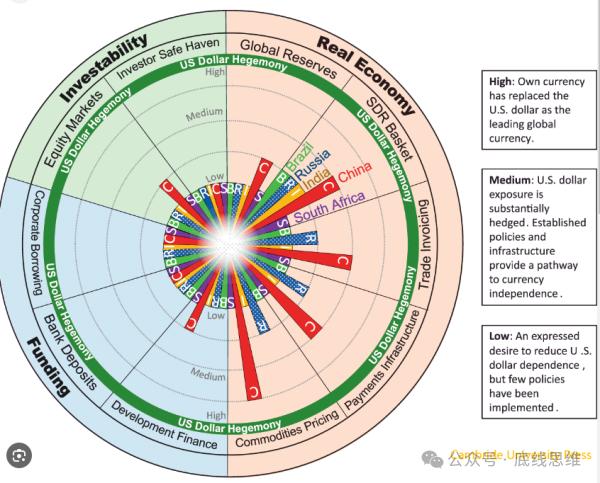 金砖国家中,人民币在大宗商品定价、支付基础设施、贸易计价和SDR等领域,对美元霸权发起挑战。图片来自2022年2月24日剑桥大学出版社文章《全球金融体系去美元化,金砖国家做得到吗》,作者Zongyuan Zoe Liu and Mihaela Papa为了减少对美元系统性依赖产生的风险,世界出现了去美元化风潮,国际货币更趋于多元化,其中人民币又备受青睐。于是国际上就产生了一种说法,说人民币国际化的目标是取代美元。