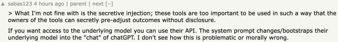 有人反驳道:「如果你想访问底层模型,可以使用 OpenAI 的 API。我不明白这有什么问题。」