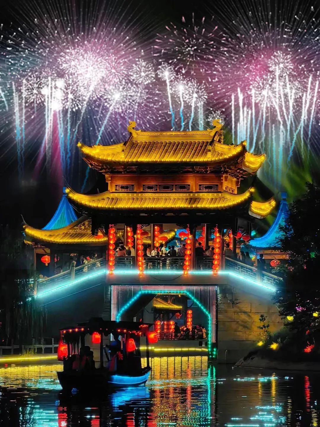 最浪漫的当属坐船赏烟花,坐在船上看烟花绽放在夜空,五彩斑斓的烟火如同梦幻般的画卷仿佛置身于一个美妙的梦境中。