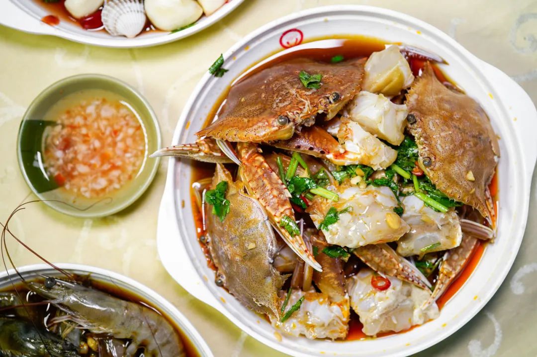 生腌被誉为“毒药”的生腌,算是把极致鲜美发挥到了淋漓尽致。蒜末、辣椒粒、芫荽、醋、酒、酱油、香油等各司其职,静待膏蟹、虾蛄、鲜虾、血蛤等海中君王入瓮,2~3小时后,它们便可御驾亲征、杀伐夜市了。