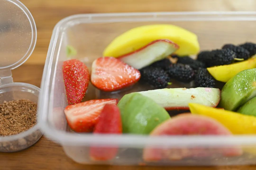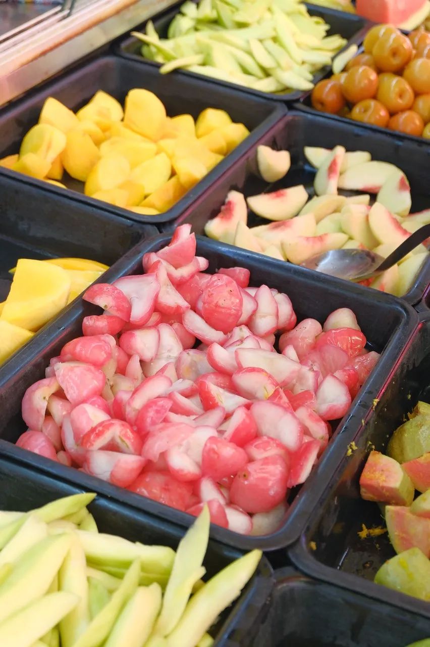 不喜酸的潮汕人便神奇地解锁了甘草酱油与水果的奇妙搭配:一勺甘草粉、一勺南姜末,将水果的酸涩抹去,勾出了清甜。
