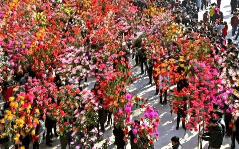 每年正月十一,金东区孝顺镇让河村有“迎花树”习俗。村民在“迎花树”的海洋中抢花树,讨彩头,意寓风调雨顺、五谷丰登。迎花烛
