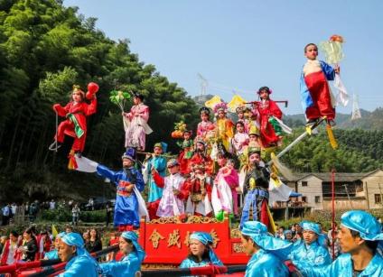 永康迎花烛,省级非遗项目,至今有800多年的历史。每年正月十三,村民们会抬上一支巨大的六角形花烛在各村巡游,以纪念乡人陈亮高中状元,同时祈求国泰民安、五谷丰登、六畜兴旺。抬阁
