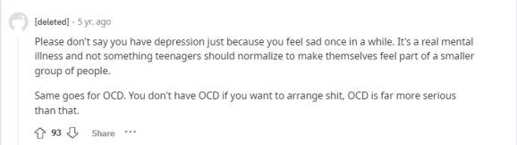 “请不要因为偶尔感到悲伤就说自己得了抑郁症。这是一种严肃的精神疾病,我们不应该把这个词语正常化,随随便便就认为自己是这个群体中的一员。