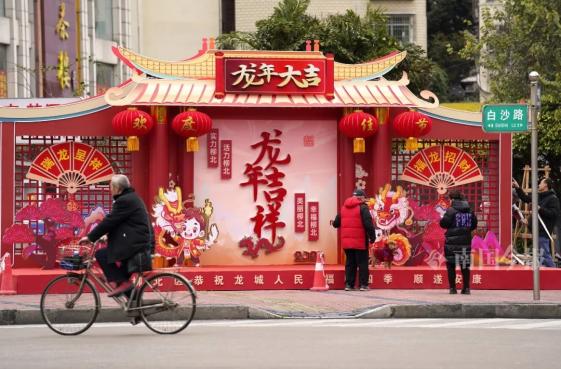 白沙路上,龙年大吉的装饰已经安装好。