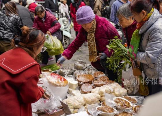 青云菜市,市民在选购年糕。