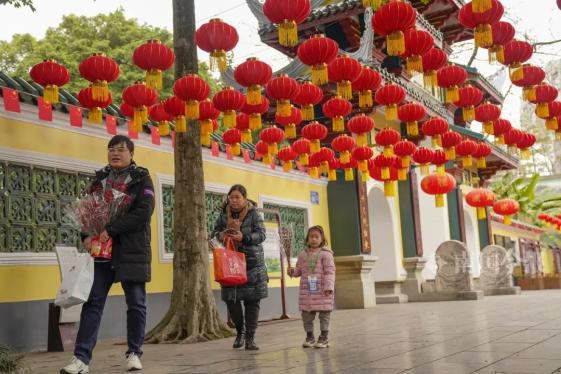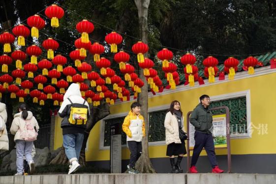 柳侯公园门前,大红灯笼高高挂。