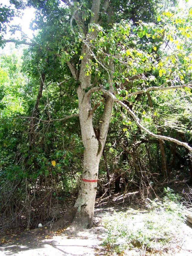 图:大戟科毒番石榴树-由于相当危险,每一颗都要画上红圈警示