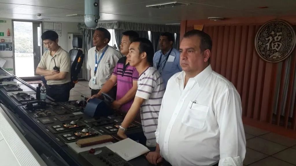 冯剑群参与巴拿马运河船闸运输图为在夏之远6轮的驾驶台