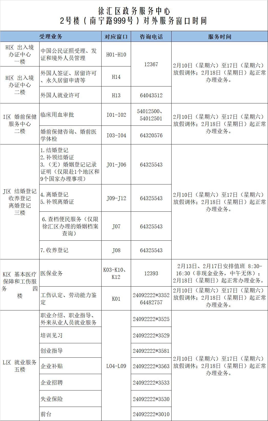 临近假期,徐汇区政务服务中心公布春节期间各服务窗口开放时间,具体安排如下: