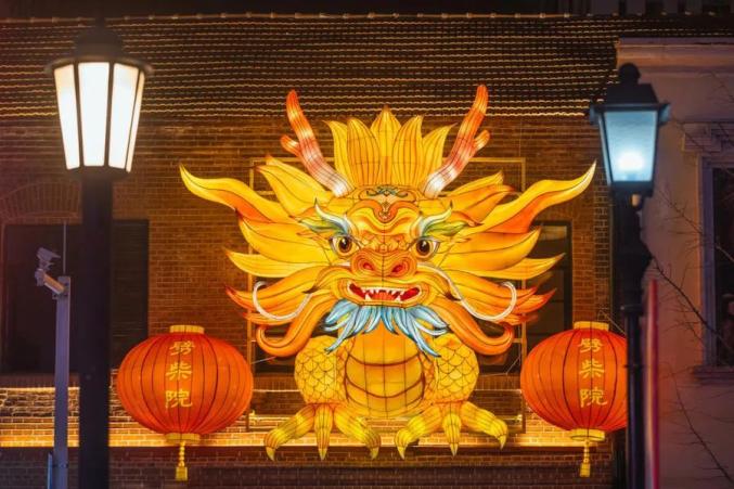 同时,劈柴院中山路门口也有一条威武的巨龙,晚上灯火辉煌非常喜庆。
