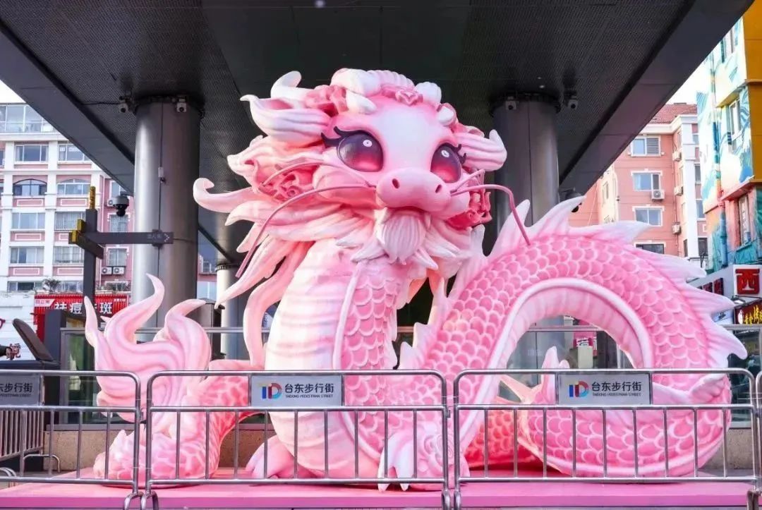 海信广场15米粉色巨龙,栩栩如生的样子让人惊叹,龙头、龙身、龙尾哪里拍都很出片。