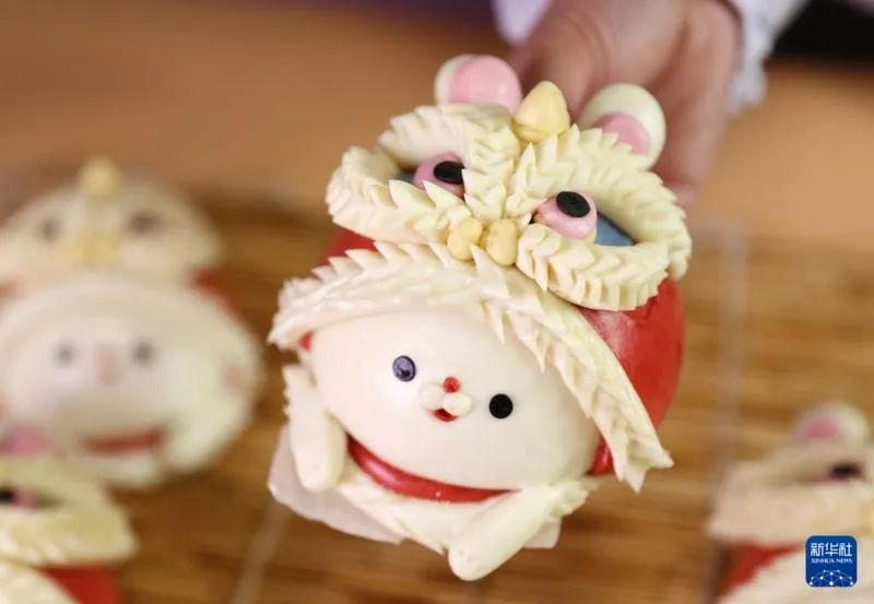龙年花馍也特别走俏,在热汽萦绕的作坊里,醒狮龙、金龙迎春、龙宝......各种花饽饽“龙”上线,热气腾腾、可爱喜庆。