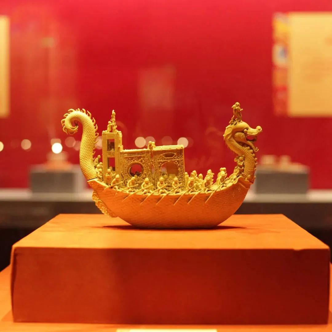 民国黄釉人物龙形舟其中,《龙腾盛世——甲辰龙年生肖贺岁展》共展出祥龙纹饰馆藏精品文物84件/套,商代的夔[kuí]龙纹铜鼎、清代蟒袍、汉代铜饰等文物均为首次对外展出,深刻阐释龙文化的吉祥寓意。