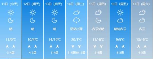 青岛北部内陆地区未来几天天气预报。图源:中国天气网青岛天气展望