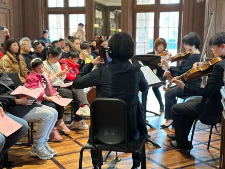 2月10日正值甲辰年农历正月初一。下午,上音“城市音乐会客厅”里响起《新春乐》的乐声。随着欢快的曲调,观众们时而和着节奏点头打拍,时而跟着旋律摇晃。上音公共开放空间新春首场音乐会就在历史保护建筑的“镜厅”内正式开启,党委书记裴小倩、院长廖昌永参加了音乐会。