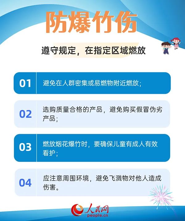 交通事故、一氧化碳中毒、烧伤烫伤等各类安全事故易发。为了让孩子度过一个健康、愉快、安全的春节,家长和孩子要提高安全防范意识,注意预防伤害事故发生。同时,作为监护人,家长应从以下几个方面加强防范,平时也应多叮嘱孩子注意安全。