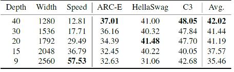 模型架构的配置,例如宽度、深度和扩展率,对小语言模型的最终性能有相当大的影响。作者做了大量实验进行分析,发现深度影响小语言模型效果最重要的因素。一个更深的模型效果更好,但在 GPU 的推理速度也会低一些,以下是在 50B 数据上具体的实验结果。