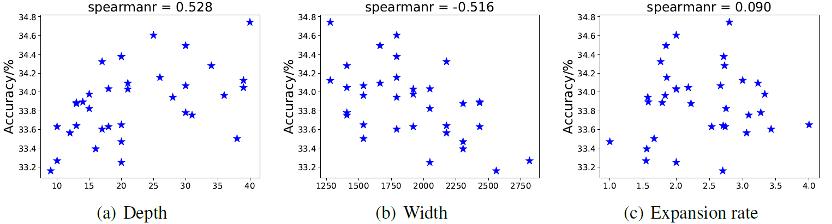 固定模型参数量为 1B 左右,模型效果与深度、宽度、扩张率之间的关系。参数继承