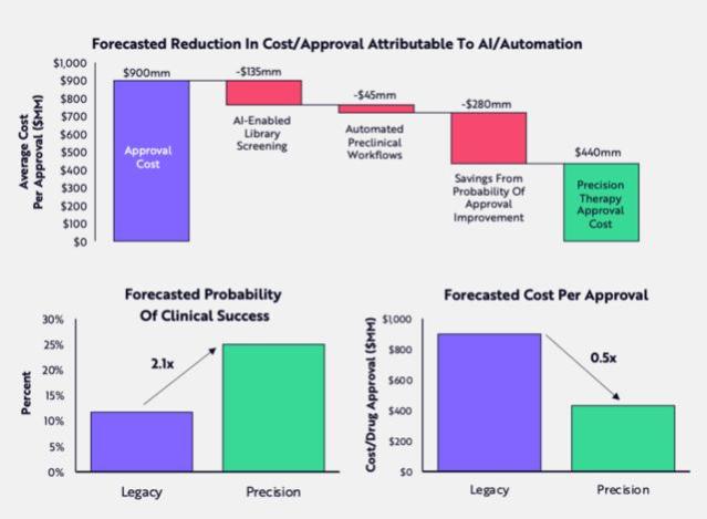 在未来十年中,充分利用这些技术的公司可将每次批准的成本降低 近 50%,部分原因是进入临床试验的候选药物的成功几率提高了一倍多。