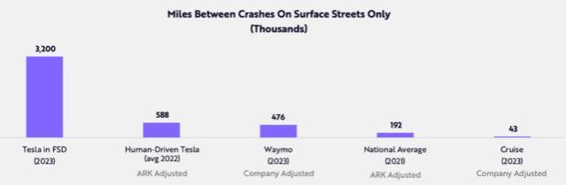 在全自动驾驶(FSD)模式下,特斯拉在地面上的安全性是手动模式下的5倍,是全美平均水平的16 倍。Waymo 的自动驾驶汽车比全国平均水平安全约2-3倍。