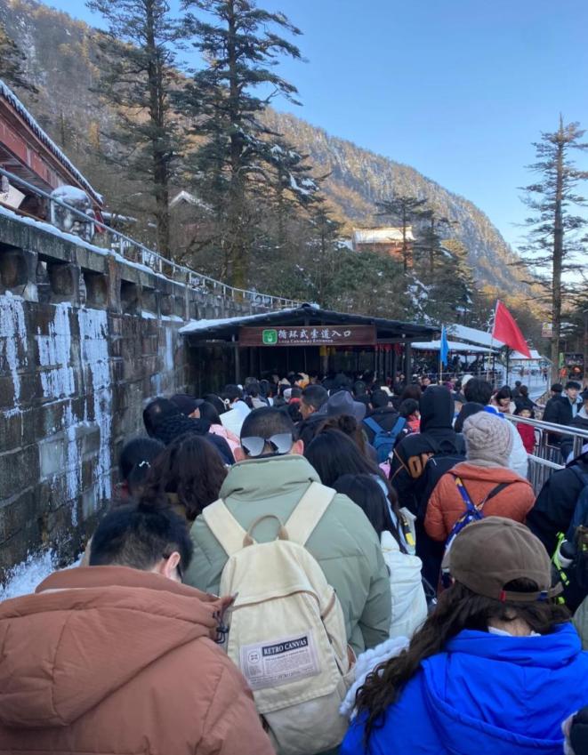 峨眉山排队上金顶的队伍↓