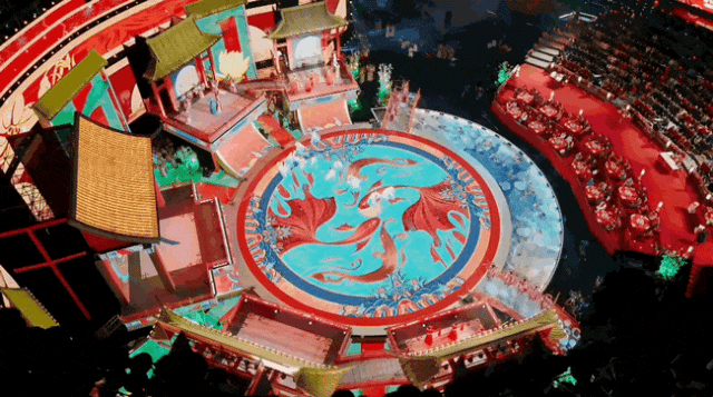 整个舞台以对称、同心、内切的几何美感进行设计,生动还原古戏楼造型。舞台表演区呈现圆形花瓣状,这是将四川芙蓉花元素巧妙融入,寓意戏曲艺术百花齐放。此外,五个戏楼的设计参考了四川传统民居的屋檐、廊桥等造型特点。整个舞台加观众区域从天空俯瞰的造型,则是根据三星堆图案演变设计而成,造型独特又神秘。据悉,《2024年春节戏曲晚会》以11个各具创意的节目为主体,现场通过露天主会场、地域特色十足的古戏台、依托数字技术和科技手段延展舞台等丰富多元的视觉场景,充分体现“思想+艺术+技术”融合传播的鲜明特色。