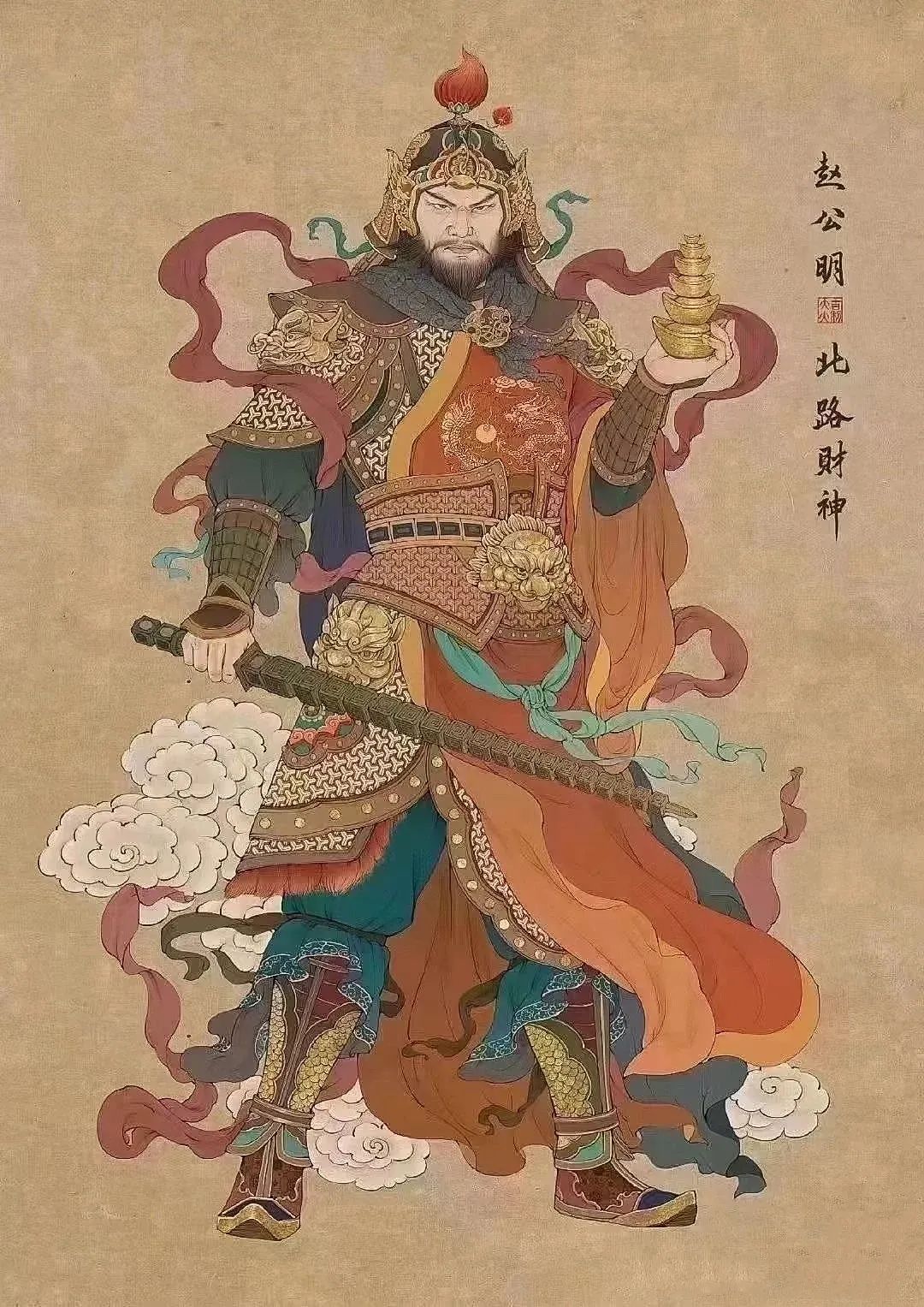 想招财进宝就拜拜他们的领导吧,于是赵公明财神的形象就更加深入人心了。