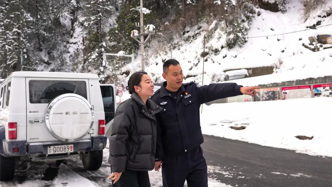 “辛苦了,这一路上,该有的仪式感要有”。说着从副驾驶拿出玫瑰花送给王晶。两人简单寒暄后,大家便出发进独龙江。路上,高黎贡山独龙江公路的天空又飘起了雪花,两人看着熟悉的场景,思绪翻涌,紧紧相拥,久久不分开。