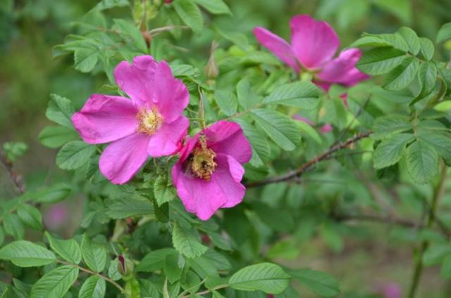 汉语中原指中国本地的香料植物玫瑰(Rosa rugosa),英语称其「rugosa rose」(大意:皱叶蔷薇)或「Japanese rose」(大意:日本蔷薇)。大花常单生,紫红色至白色,小叶五至九,叶面褶皱。它在观赏领域不如月季受欢迎,通常用于制作玫瑰糖等。西方传统的各种用于观赏或香料的 rose(比如著名的大马士革玫瑰(Damask rose,Rosa × damascena))传入中国后也被称作「玫瑰」,但这些西方传统的 rose 和中国本地的玫瑰其实很不一样。