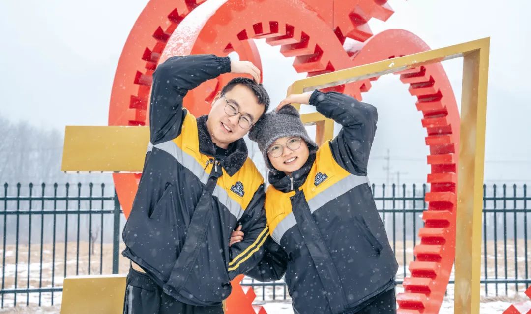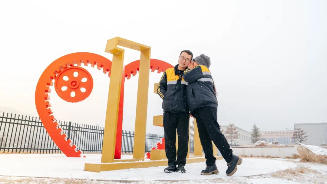 铁路小夫妻李银龙和妻子樊晓静驻足停下,相互搓搓冻地发红的手,樊晓静还给李银龙塞进一个新织的围脖,那是这几天晚上忙着赶出来的。近一分钟的邂逅虽然短暂,话语不多,却满满温情。