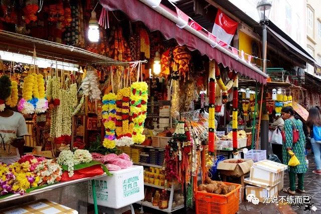 小印度的鲜花店,鲜花是用来拜神的(图片来自google)小印度的商业街要狠狠砍价。东西还都挺好玩的,都是印度风情的装饰物啊小饰品之类,也有衣服什么的,多数摊主都能讲简单的中文。女孩子小朋友们可以去在手上画个henna,纯天然染料,一星期左右就自然褪色了,大概是8-15块钱。
