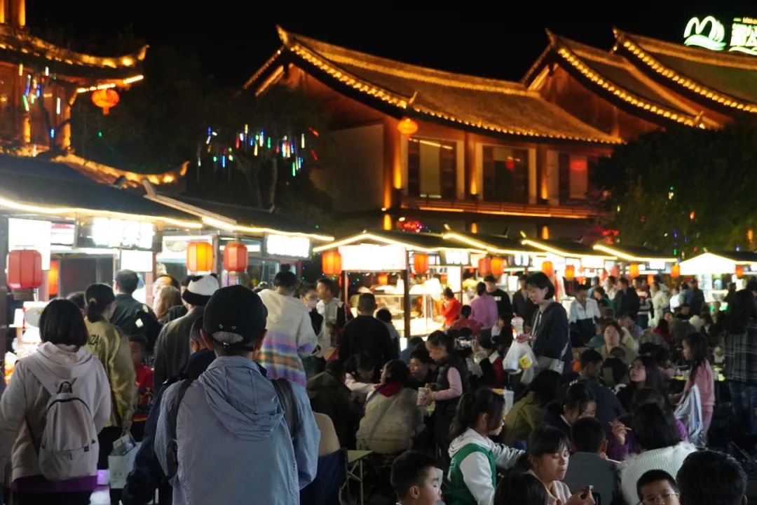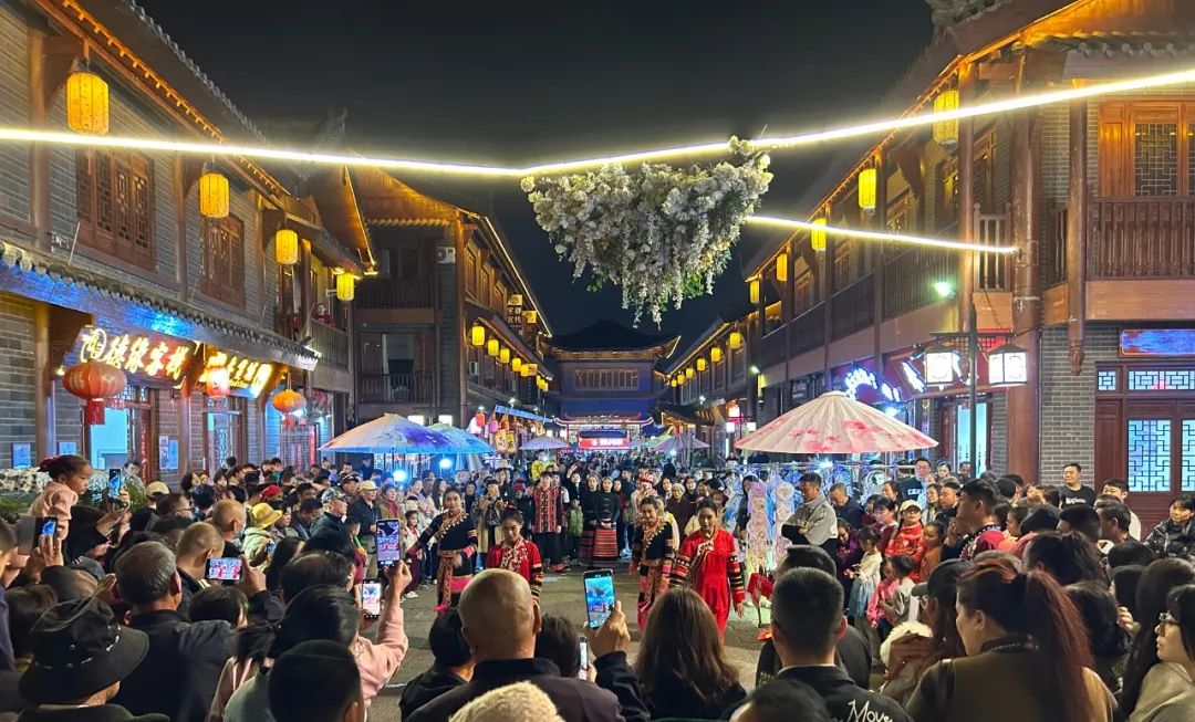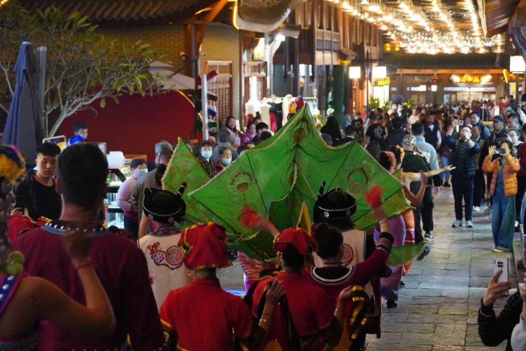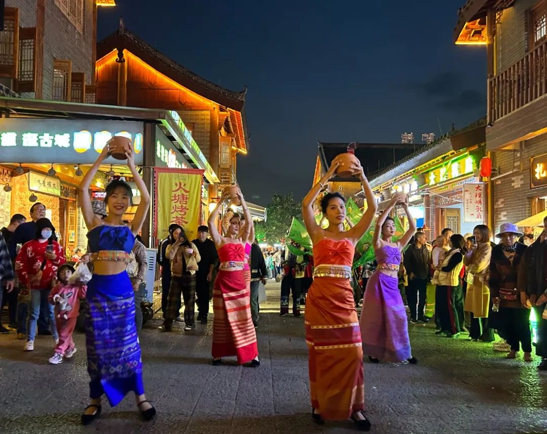 当夜幕降临,普洱茶马古城旅游小镇华灯初上,小镇里人流如潮,热闹非凡。在这里,有民族打跳、民族巡游、民族歌舞演出,不同喜好的市民及游客都能在这里找到“心头好”,玩得尽兴。