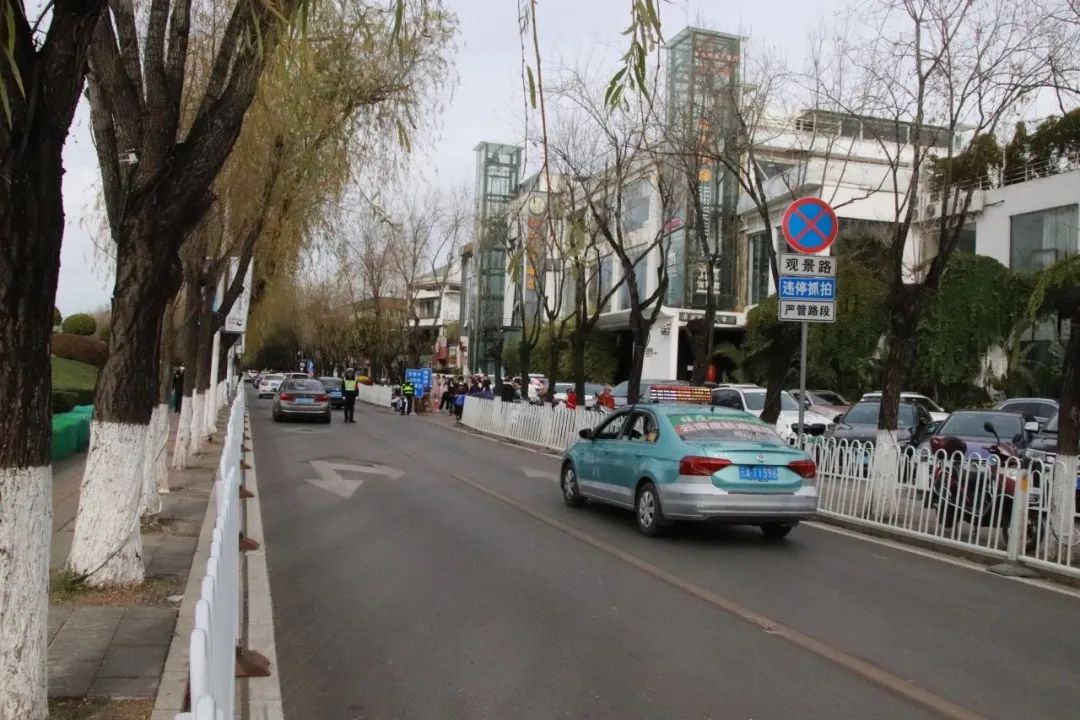 根据春节期间海埂片区交通运行状况,重点针对打车前往大坝观鸥游客多,但出租车和网约车随意上下客影响通行的实际情况,经充分调研,昆明交警在观景路北段睡美人餐厅西北侧,设置了“出租车、网约车专用上下客通道”。