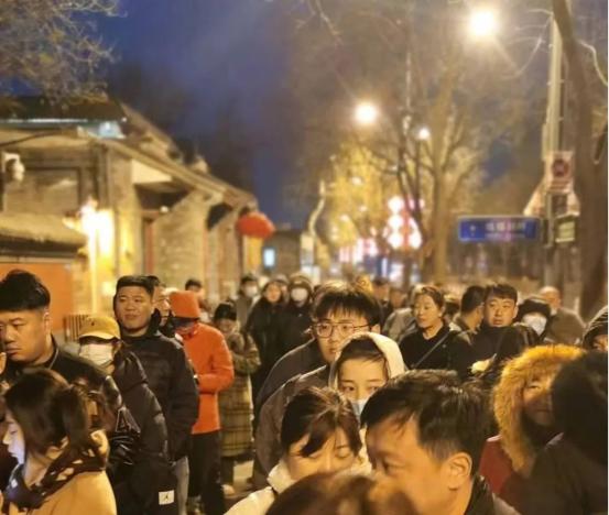 “嗨,初一那天我们早上四点就来了,队伍已经排到北新桥了,都看不到头,全是年轻人,从没来过的都很多,就拜的时候拿香的姿势,就有七八种了。”