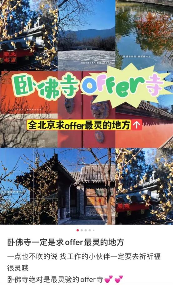就拿同在北京的西山卧佛寺来说,由于谐音offer,被一众要申请留学和找工作的毕业生挤爆。