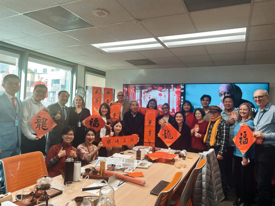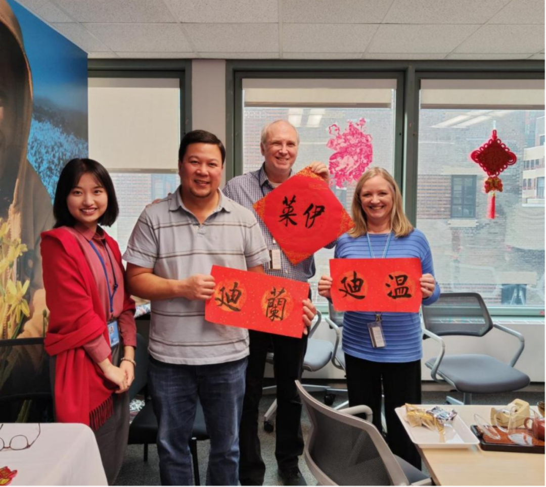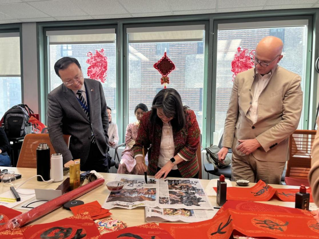 我所在的公私伙伴关系团队由赵大伟先生(David Evans)领导,他是资深的中国文化爱好者。在他的带动下,我们司每年举办书法雅集与茶话会以欢庆除夕。甲辰龙年,恰逢春节被列入联合国假日,“中国年”正式升级为“世界年”。我们司的司长琼·库努吉女士(June Kunugi)专门邀请了中国常驻联合国代表团沈晓凯公使衔参赞、联合国秘书长办公厅官员温佐先生(Zaw Win)等出席。