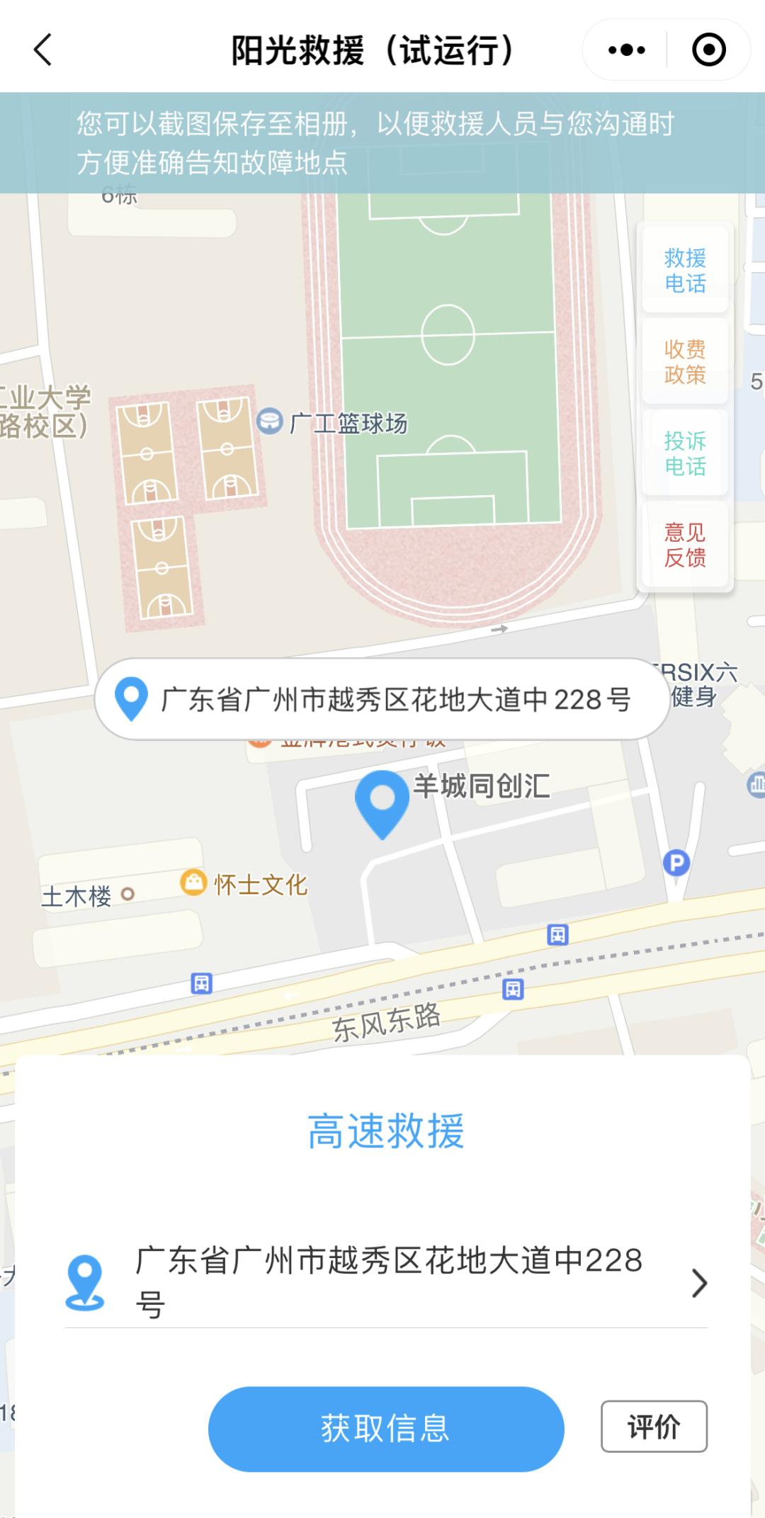点击“获取信息”进行定位选择“车辆事故”或“车辆故障”救援情况