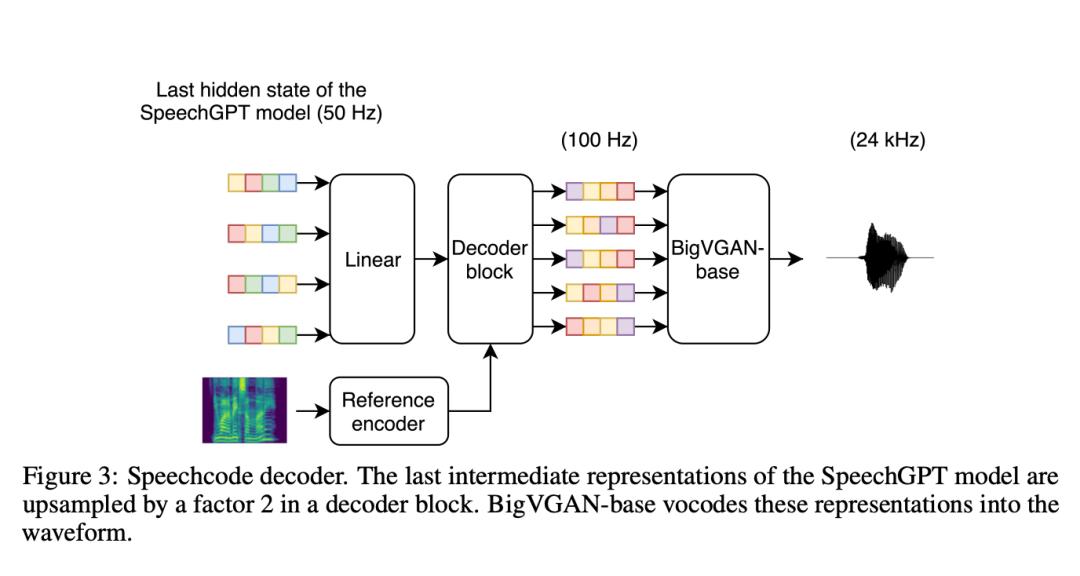 语音编码解码器带来的合成效率提升语音编码解码器能够进行流式处理,即以增量方式生成语音。将这一功能与自回归 SpeechGPT 相结合,该系统的首字节延迟可低至 100 毫秒 —— 只需几个解码语音代码就足以产生可懂的语音。