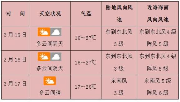 16日05时到18日08时,多云,东北风4-5级,阵风6级。
