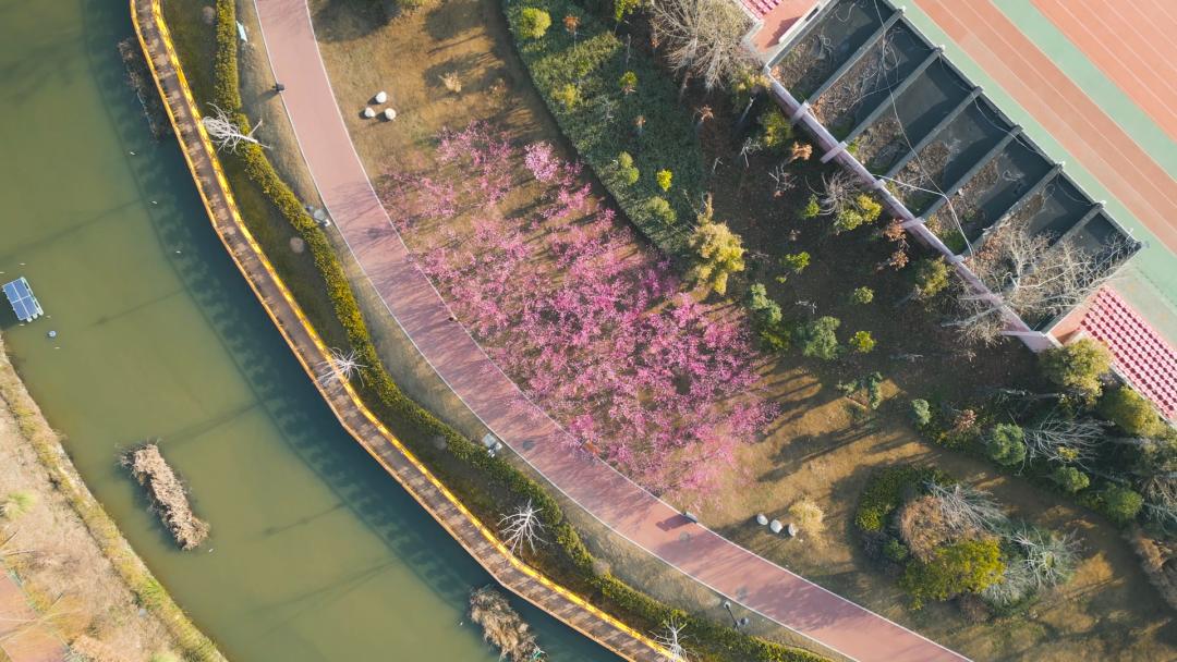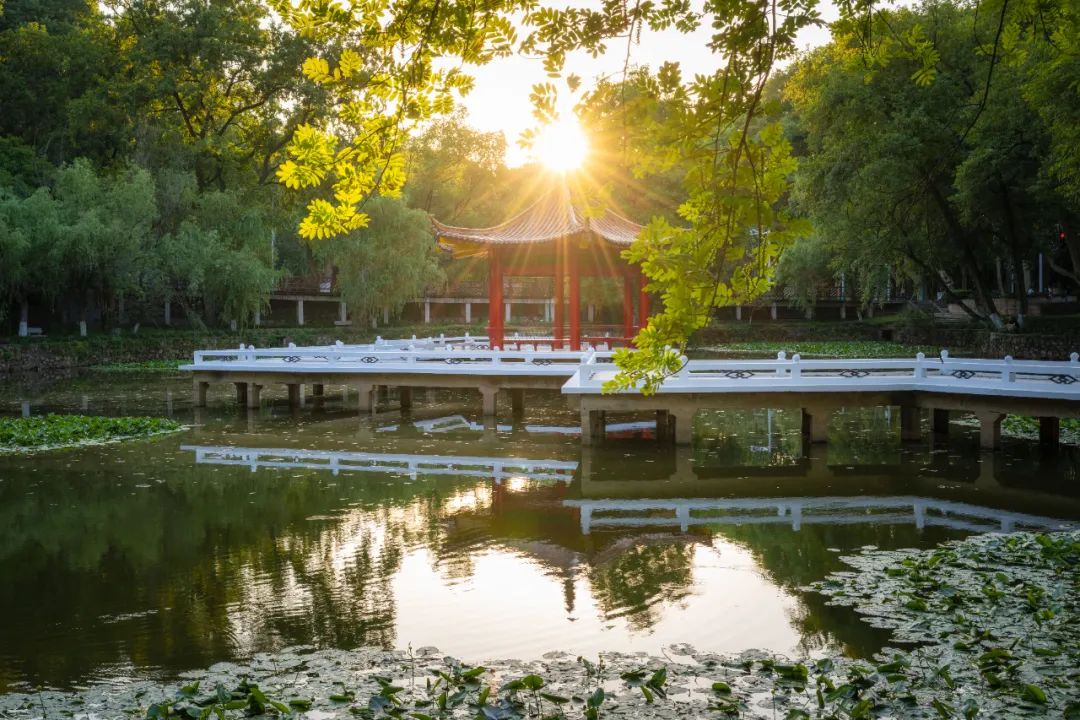 青年园再往西边走,垂眸间一片绿意入目,带着漫山遍野的清新,于是驻足在青年园。若生活中被琐碎之事裹挟,不妨此刻映照冬日的灿烂阳光,坐在木制的漂亮长椅上,慢慢回忆美好的青春时光。